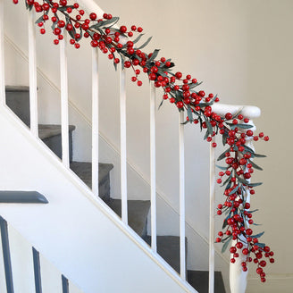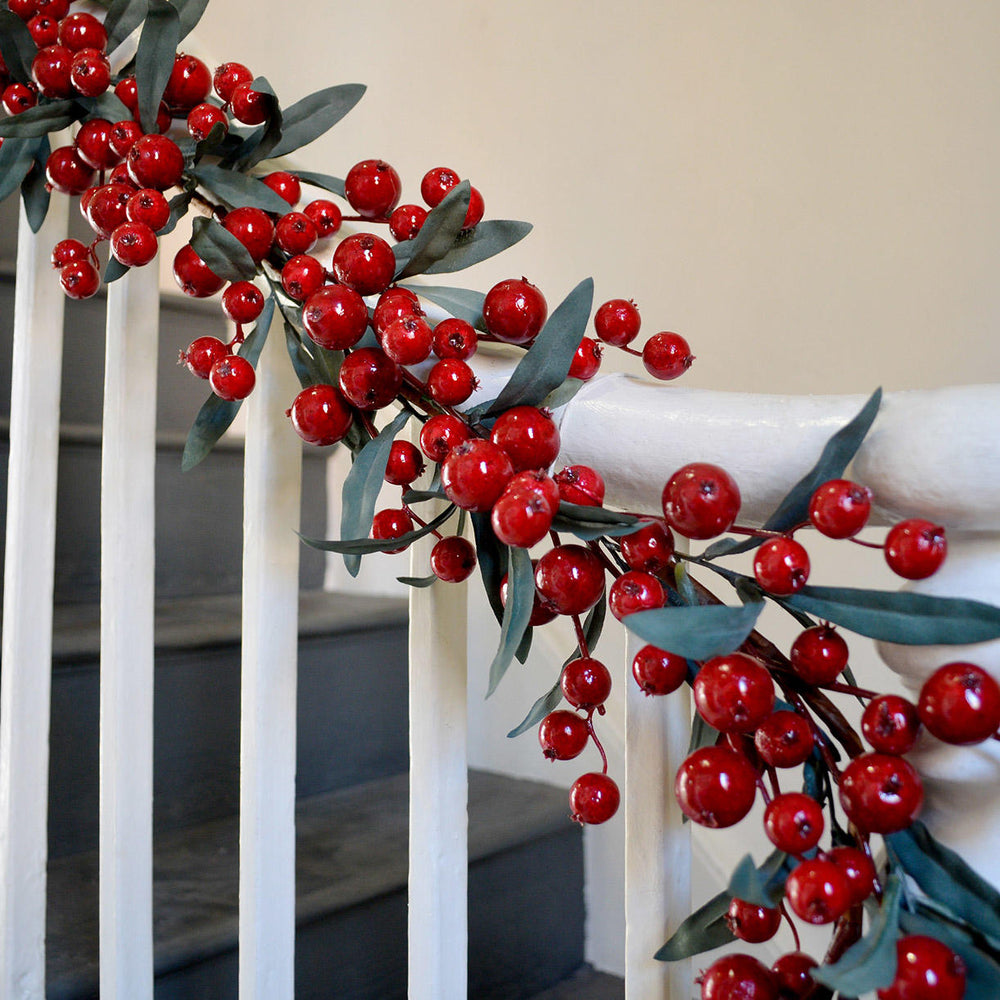 This gorgeous, cranberry and dusted leaf garland will look stunning wrapped around a bannister, or over a mantlepiece.