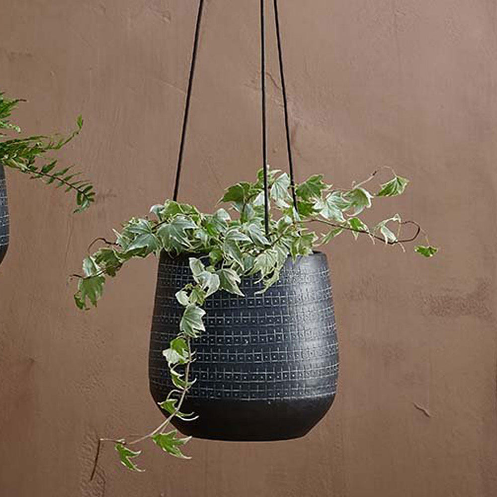 Crafted by hand and using traditional etched pattens this delightful hanging planter provide a stunning foil to the dark green foliage of trailing house plants.