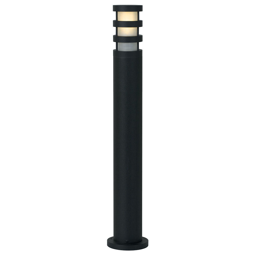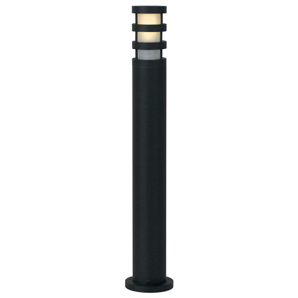Simple, contemporary outdoor bollard lights in metal in either powder coated matt black.