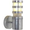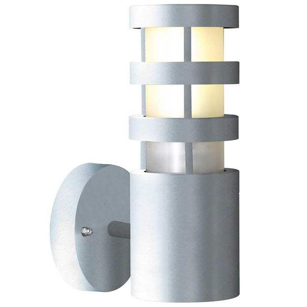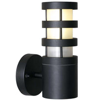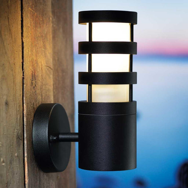 Small contemporary outdoor wall lights in metal in either powder coated matt black or aluminium finish.