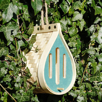 The house is made from FSC wood with handwoven bamboo, and has a natural manila cord so it can be easily hung in your garden.