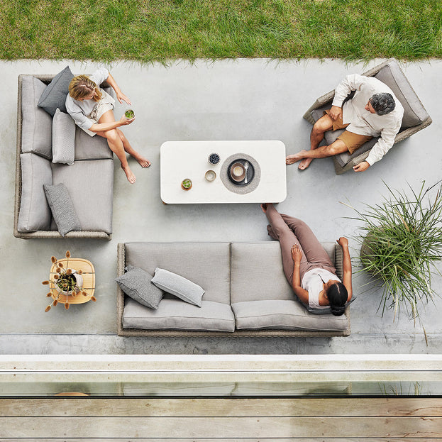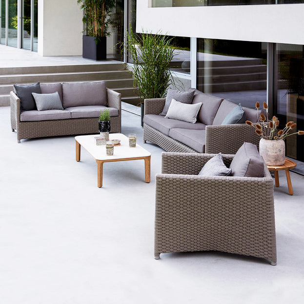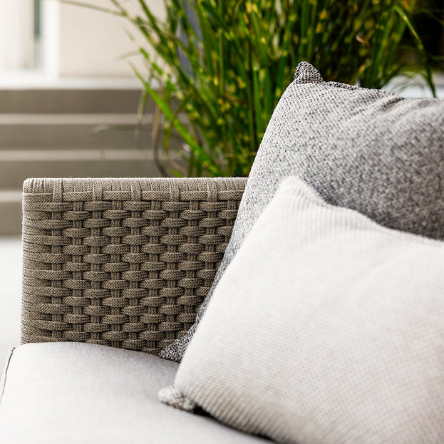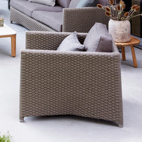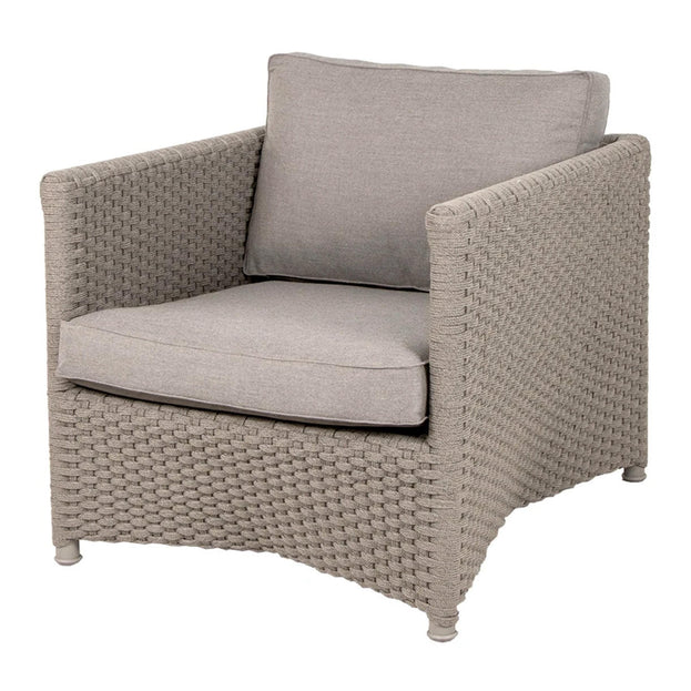 The colour of the rope weave is taupe with the seat and back cushions made in the ultra-soft and comfortable Cane-line Natté taupe fabric.