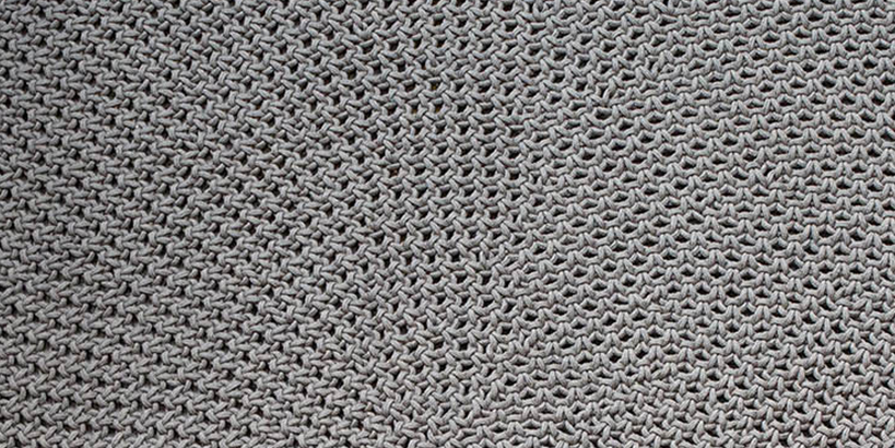 The Discover Outdoor Rug showcases exceptional craftsmanship with its intricate knit and crochet-inspired design, entirely handmade for a truly unique finish.