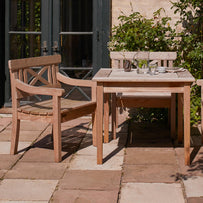 With the distinctive cross-back, the Drachmann Teak Chair is a timeless furniture classic from Skagerak.