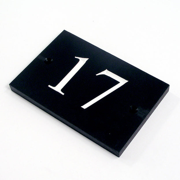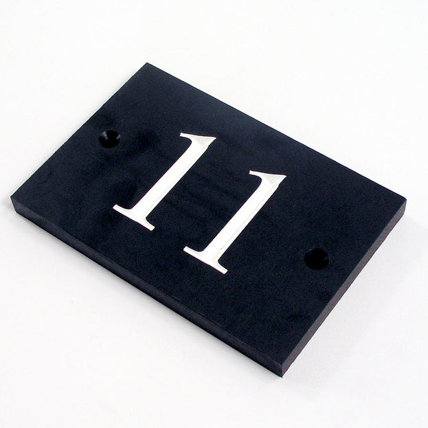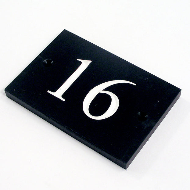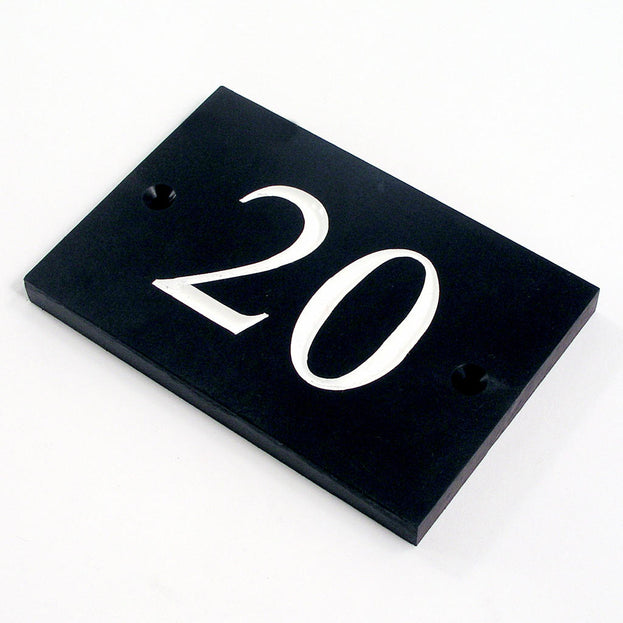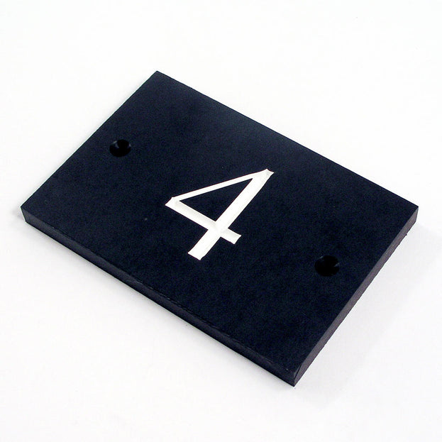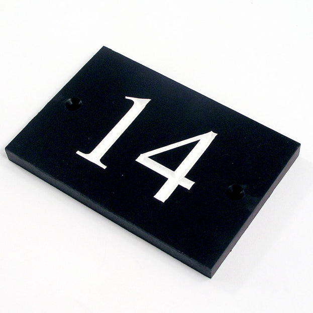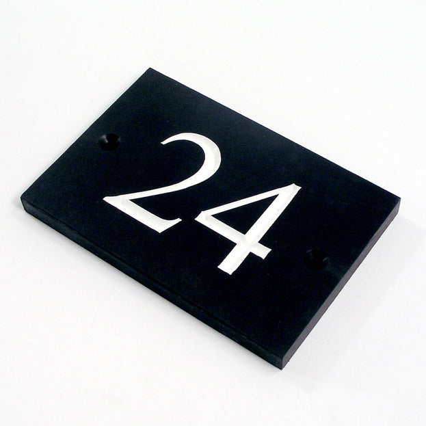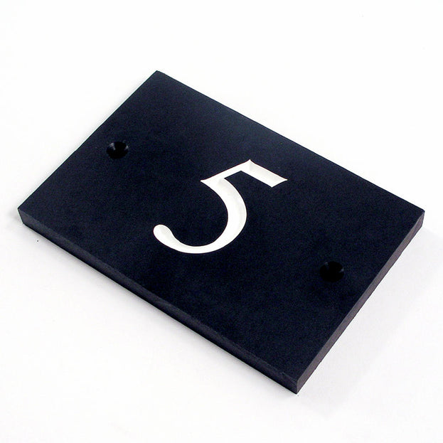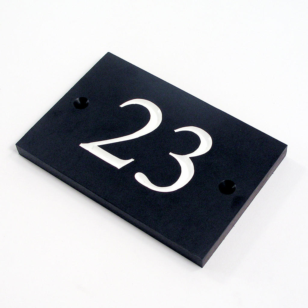 House numbers made from recycled waste paper products such as coffee cups. A cost effective, eco-alternative to slate house numbers. All our house numbers are engraved in one of a smart Times Roman font and are ink filled in white for maximum durability.