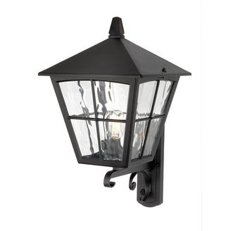 Large distinctive outdoor lanterns with a traditional window styling. Made from aluminium with a classic, black powder-coated finish and clear glass lens.