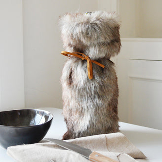 A fun and delightful way to give a bottle at Christmas with this gorgeous faux fur holder.