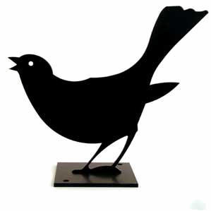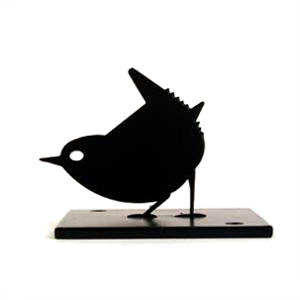 Life-size bird silhouettes cut from 4mm sheet metal, and then powder-coated. These delightful birds are a decorative and easy way to protect fence post tops.