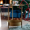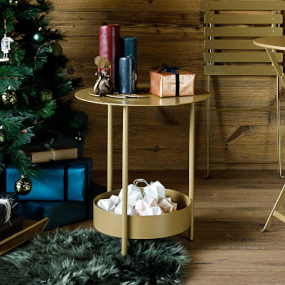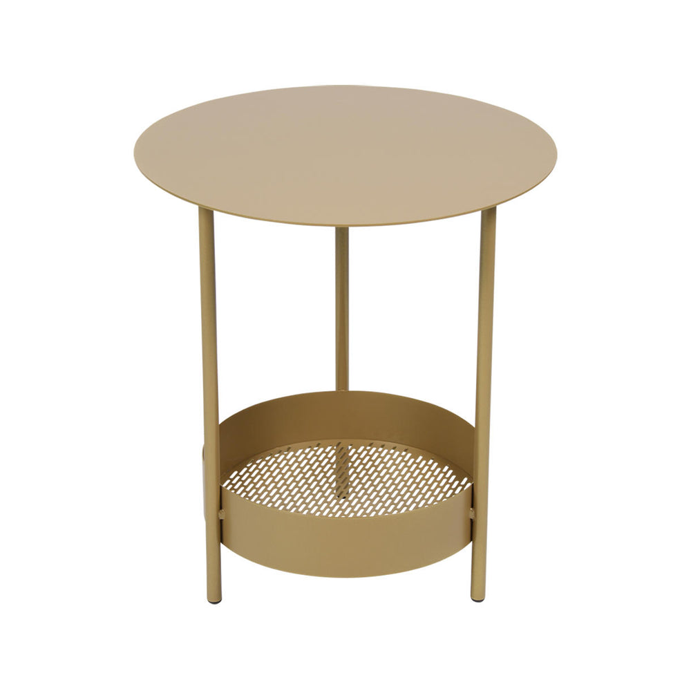 This unusual side table by Fermob is available in smooth and sleek gold for a limited time only. It has a rounded design, and an asymmetrical look, with three ultra-stable legs for stability.