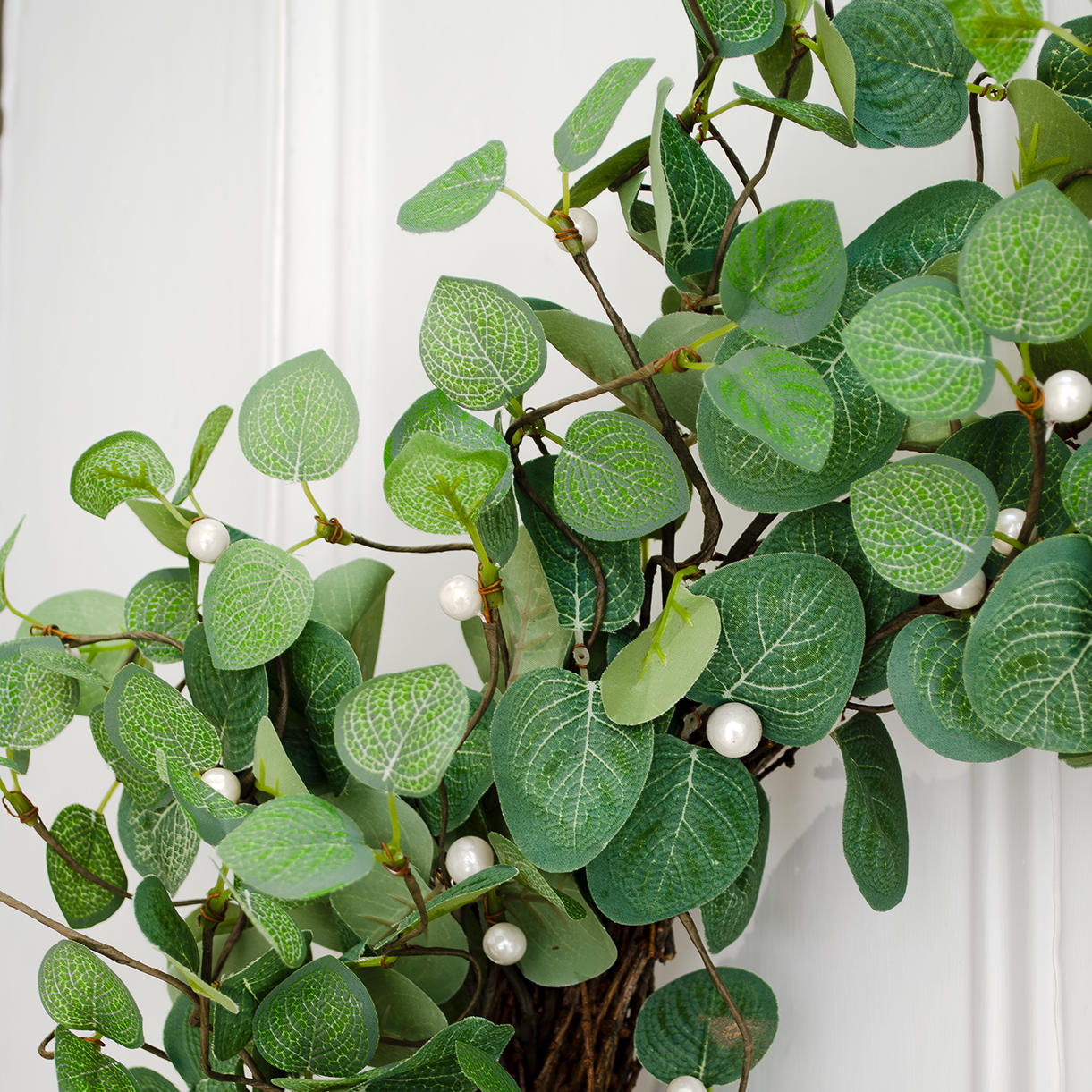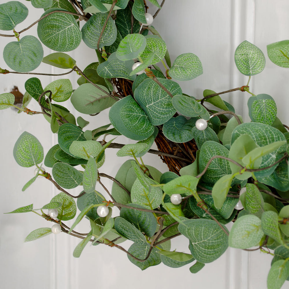 The relaxed style of the faux leaves interspersed with some decorative pearl bead detailing is a classic statement piece and will suit any home.