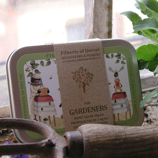 Lovely keepsake tin containing 2 skin care products to protect your skin while gardening: