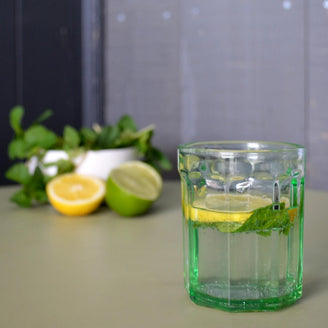 Gorgeous green glass Fish & Fish tumblers, was inspired by the tastes and colours of Italian designer Paola Navone's many travels and is based on the products made during the Great Depression in the 1930s.