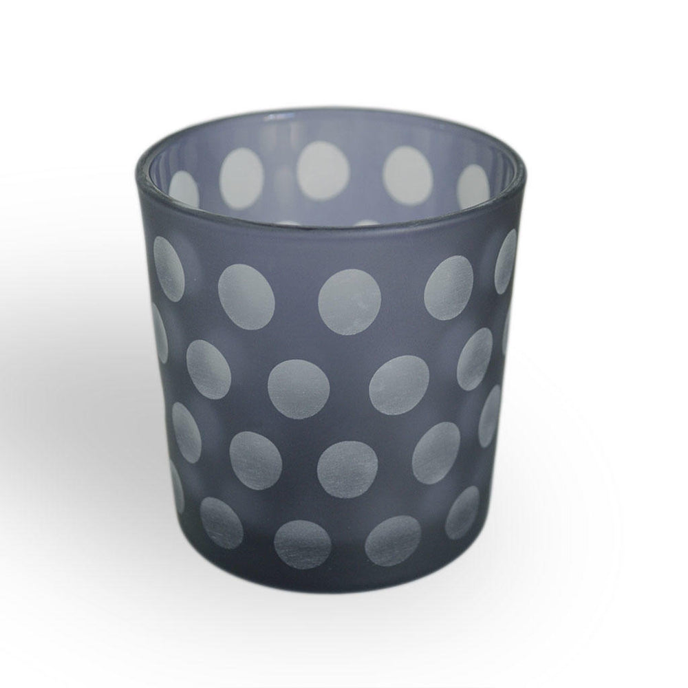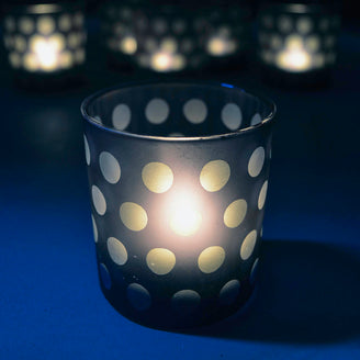 Lovely etched glass tea-light holders with clean lines and a simple dot design.
