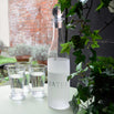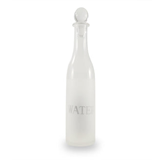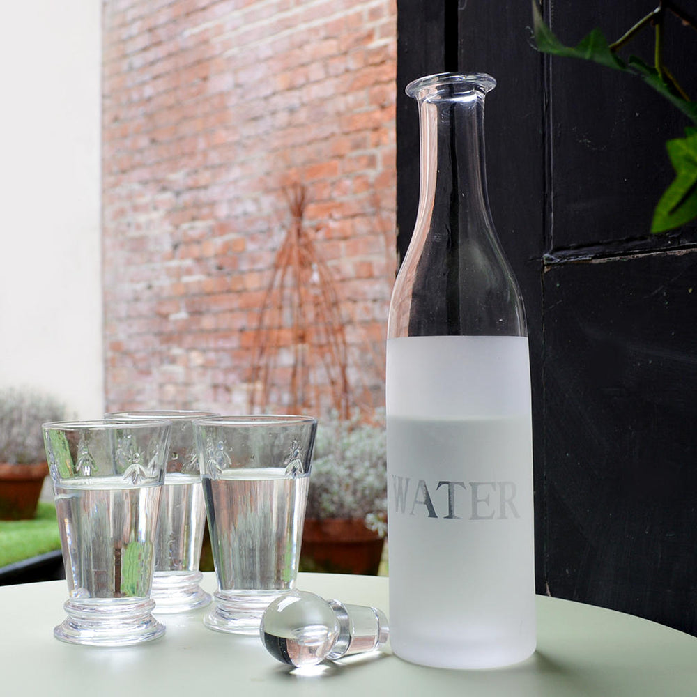 Stunningly simple glass water carafe with etched and plain glass detail.