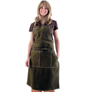 This full length apron is adjustable around the neck and has extra long ties at the waist.