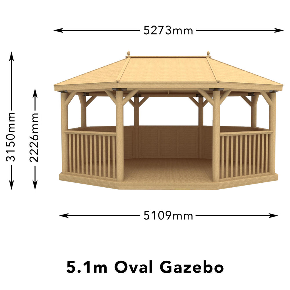 These large and elegant oval gazebos are a perfect fit for a variety of garden or outdoor spaces, seating 22 to 27 adults.