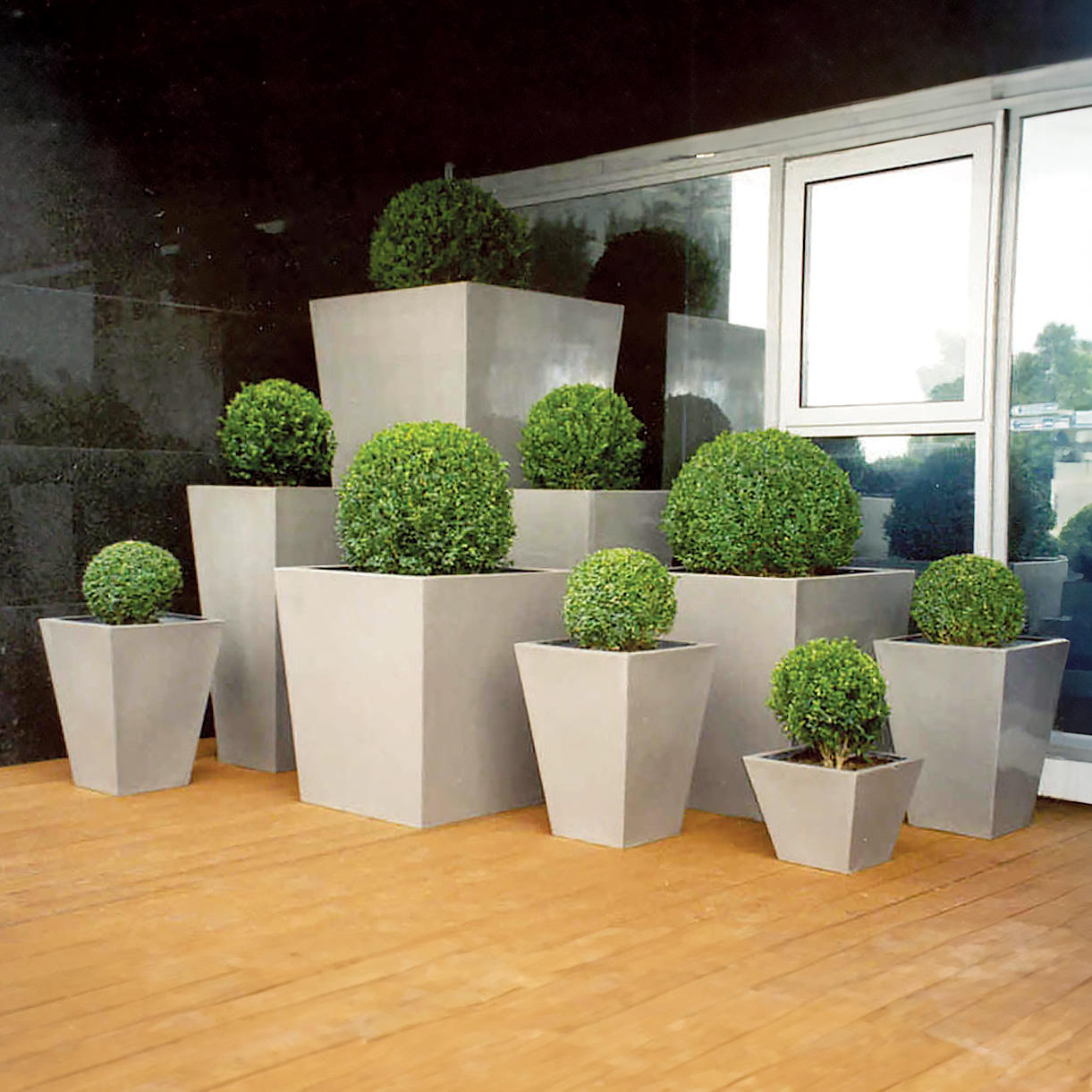These tall faux textured aluminium planters are used to great effect when height is needed to create impact and add structure in a garden or on a balcony or roof terrace.