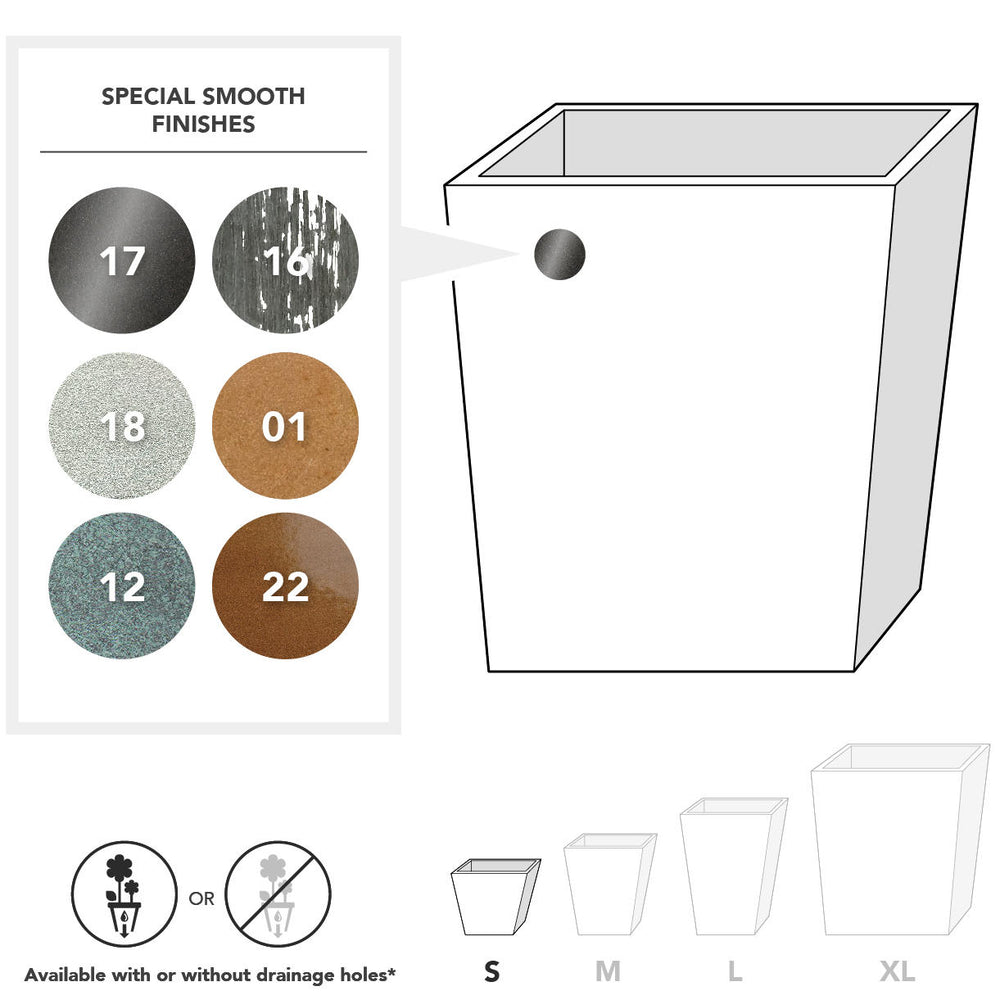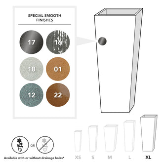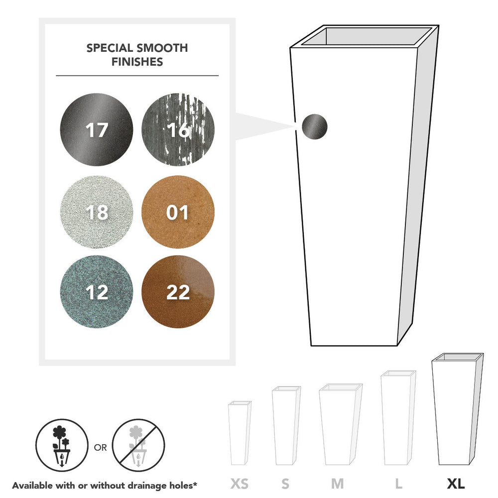 Available as either tapered planter or as a tapered column planter.