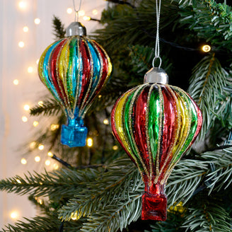 Gorgeous glass air ballon Christmas tree decoration, in a choice of 2 beautiful colours of reds or blue with a splash of sparkly gold.