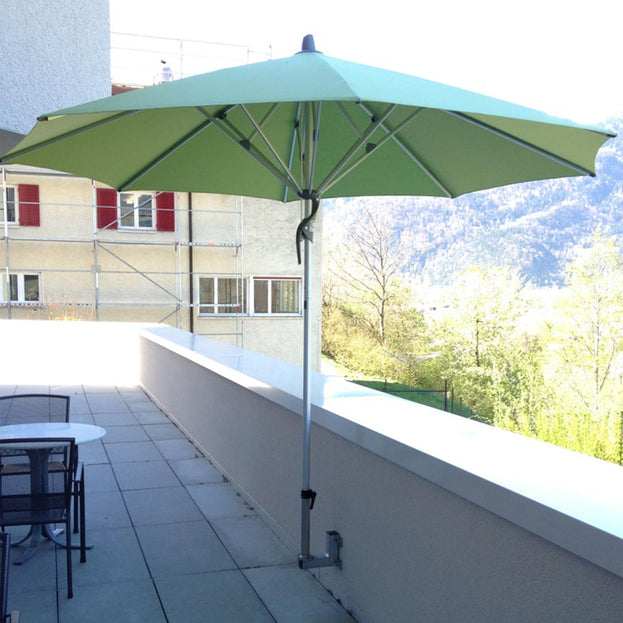 Attaching your parasol to a nearby wall is an ingenious yet simple alternative to a heavy base. If your alfresco dining table doesn't have a parasol hole, then this is the perfect solution.
