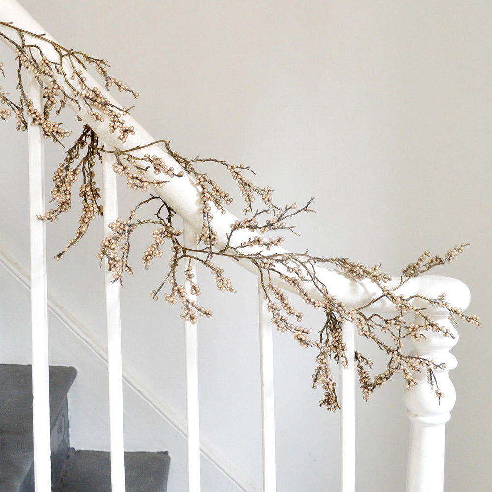 These festive glittered berry garlands make for stunning floral arrangements around bannisters and along mantlepieces.