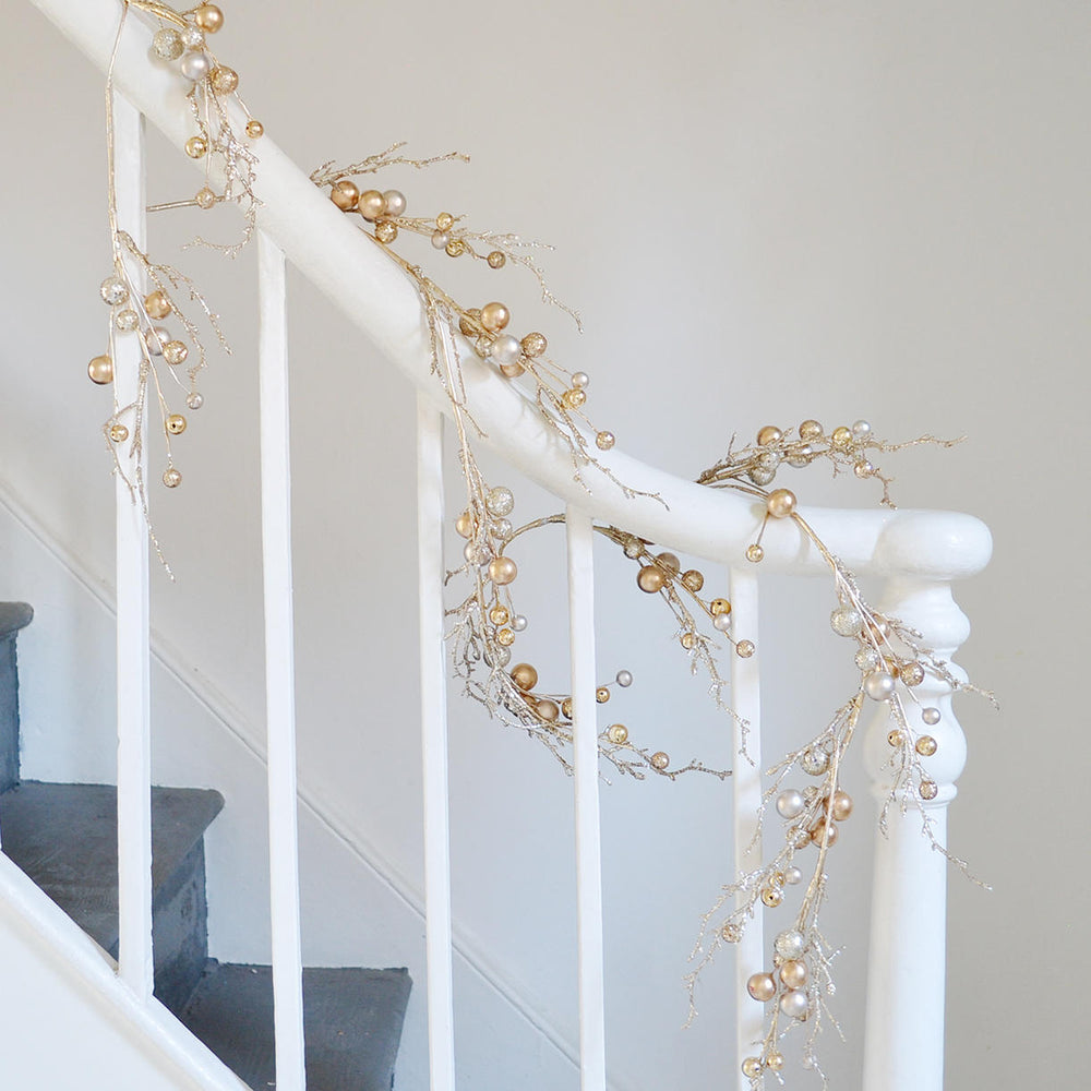 Gold berry and pearl dipped garland, perfect to give your mantle-piece a little touch of Christmas.