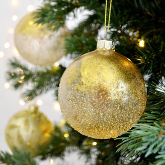 Elegant and classic designed glass tree baubles in shades of gold ombre colours with a hint of raised decorative detail.