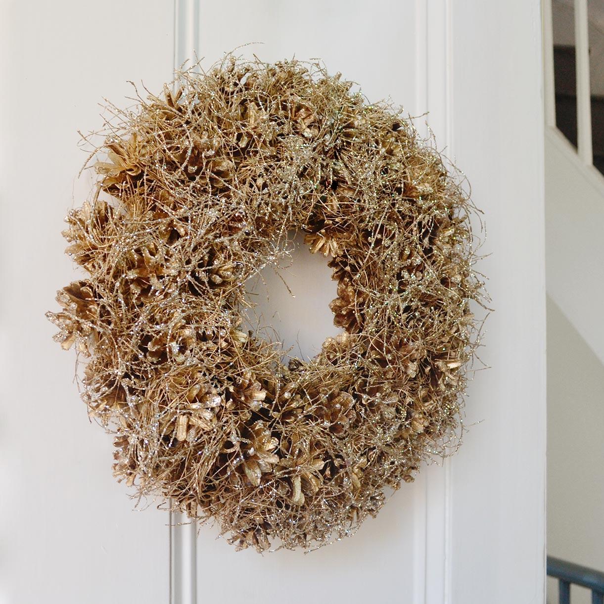 This stunning champagne coloured wreath will add a little glamour to your walls this Christmas.