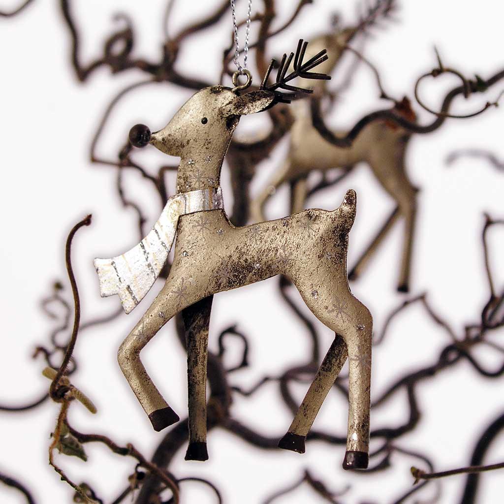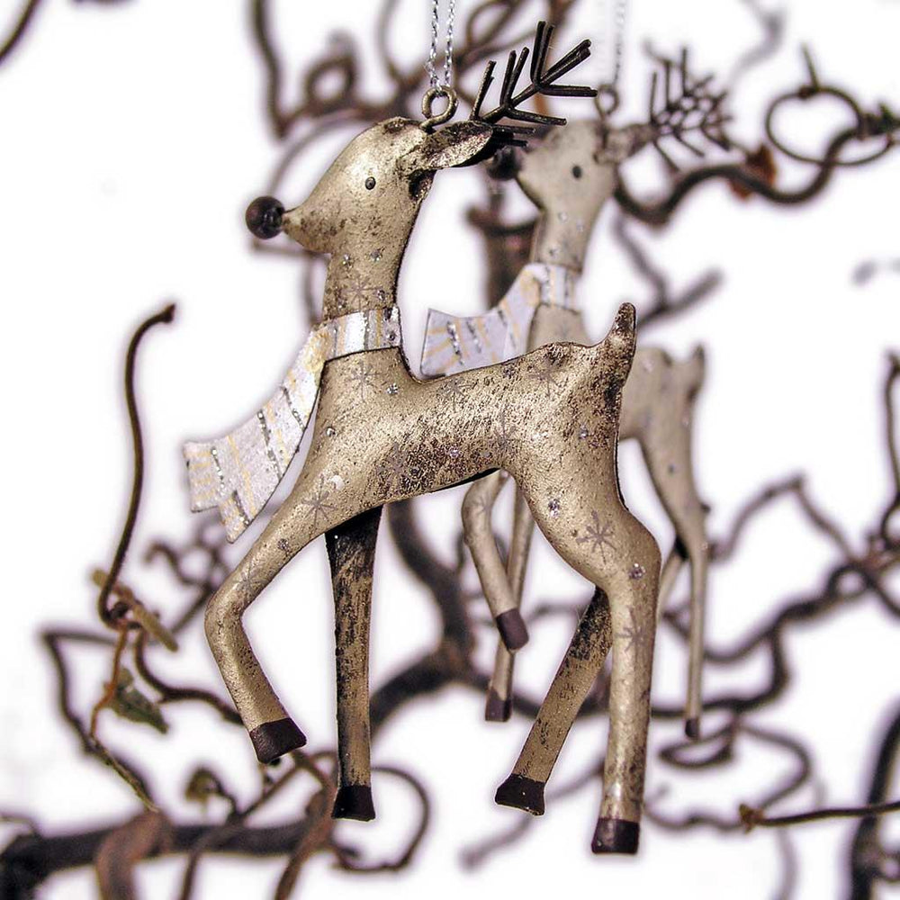Dainty little silver and gold Christmas reindeer, they look lovely on twisted hazel or a more traditional Christmas tree.