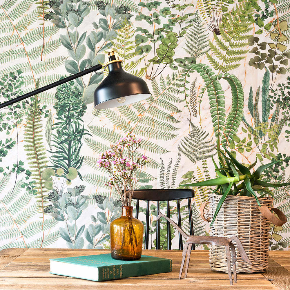 Channel the beauty of the forest with this luscious wallpaper featuring a variety of ferns. This item is no longer available