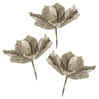 Add a touch of seasonal sparkle with this faux silk soft taupe grey poinsettia flower clip. Simply clip the flower on to wreaths, Christmas trees or garlands for enhanced opulence.