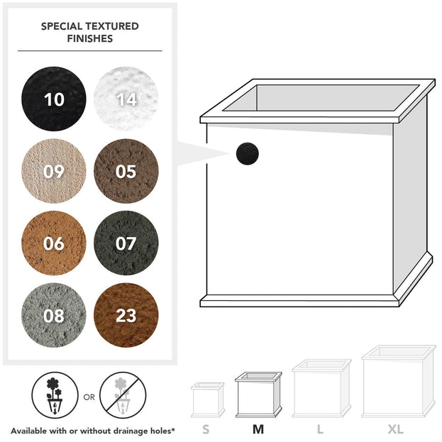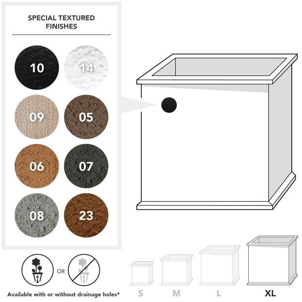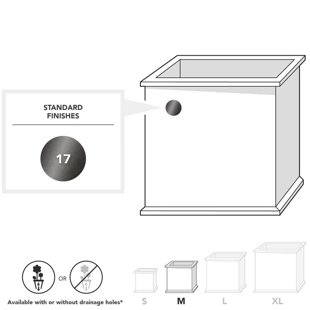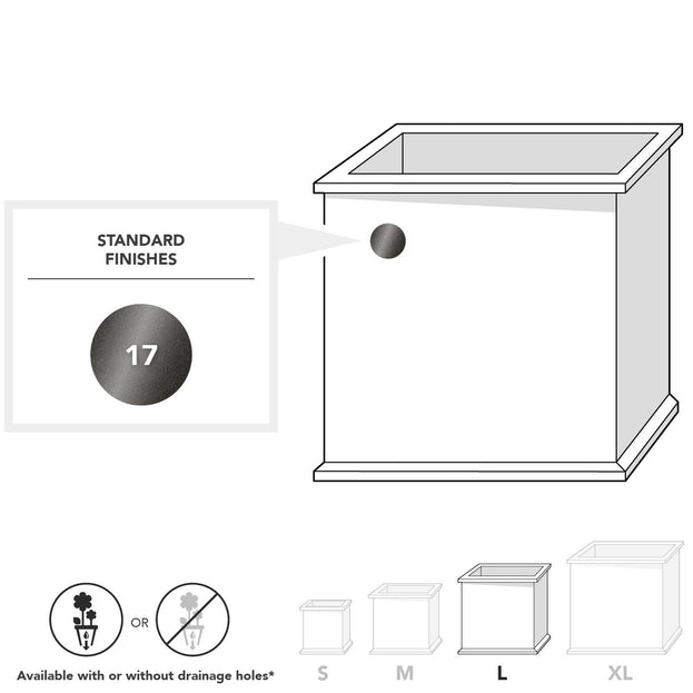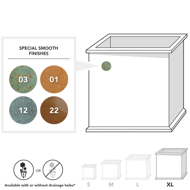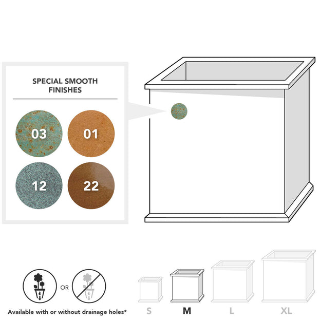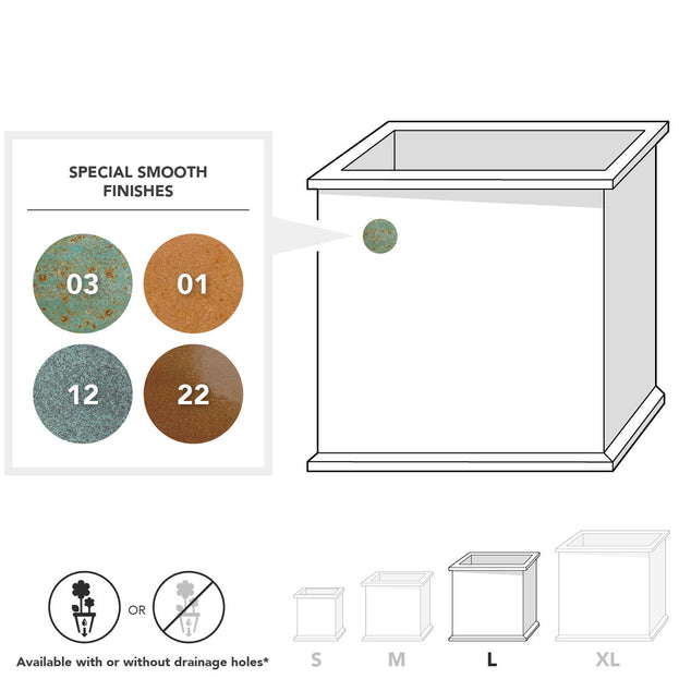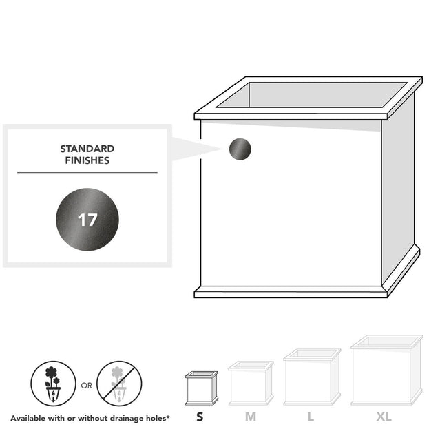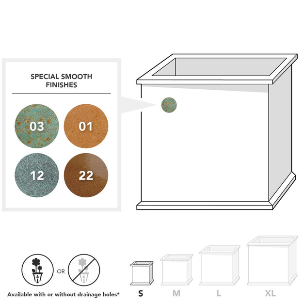 The planters are available in a variety of finishes - just select your choice from the drop down menu to see thumbnails of the finish. You might also wish to examine them in more detail by exploring all our finishes below: