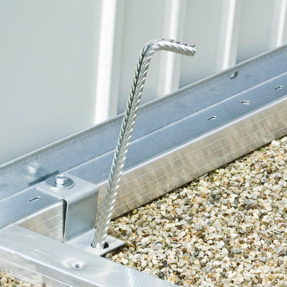 These ground anchors are to be used if the floor frame of the locker is to be laid directly on a 10cm gravel base, without foundation or slabs. These ground anchors are required for securing directly to the ground.