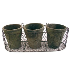 The 3 pots have been distressed to make them look aged but are not frost proof, so store in the winter. They do not have drainage holes but these could be easily drilled if required.
