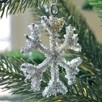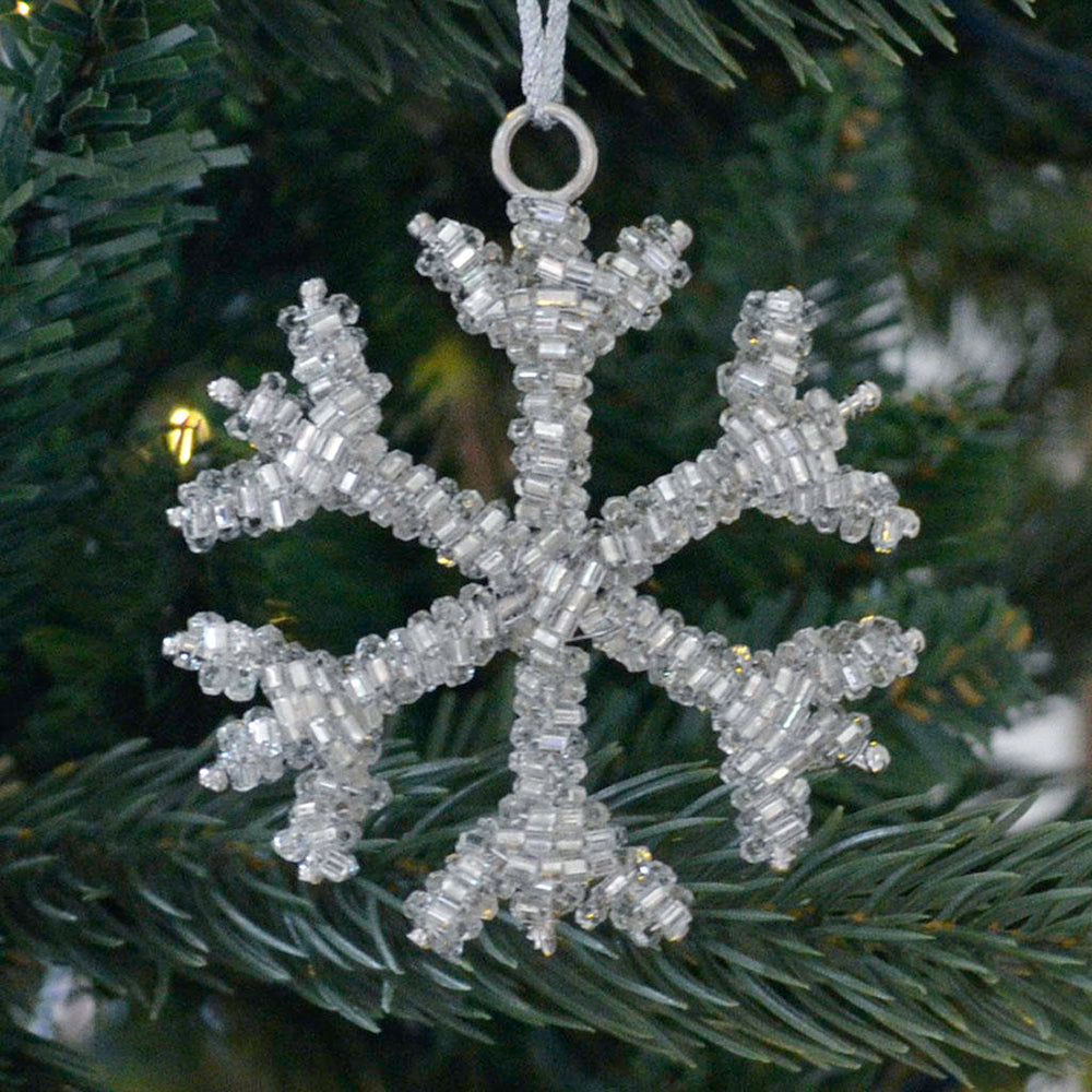 These lovely vintage style silver crystal bugle bead snowflakes are a pretty additional to any Christmas tree.