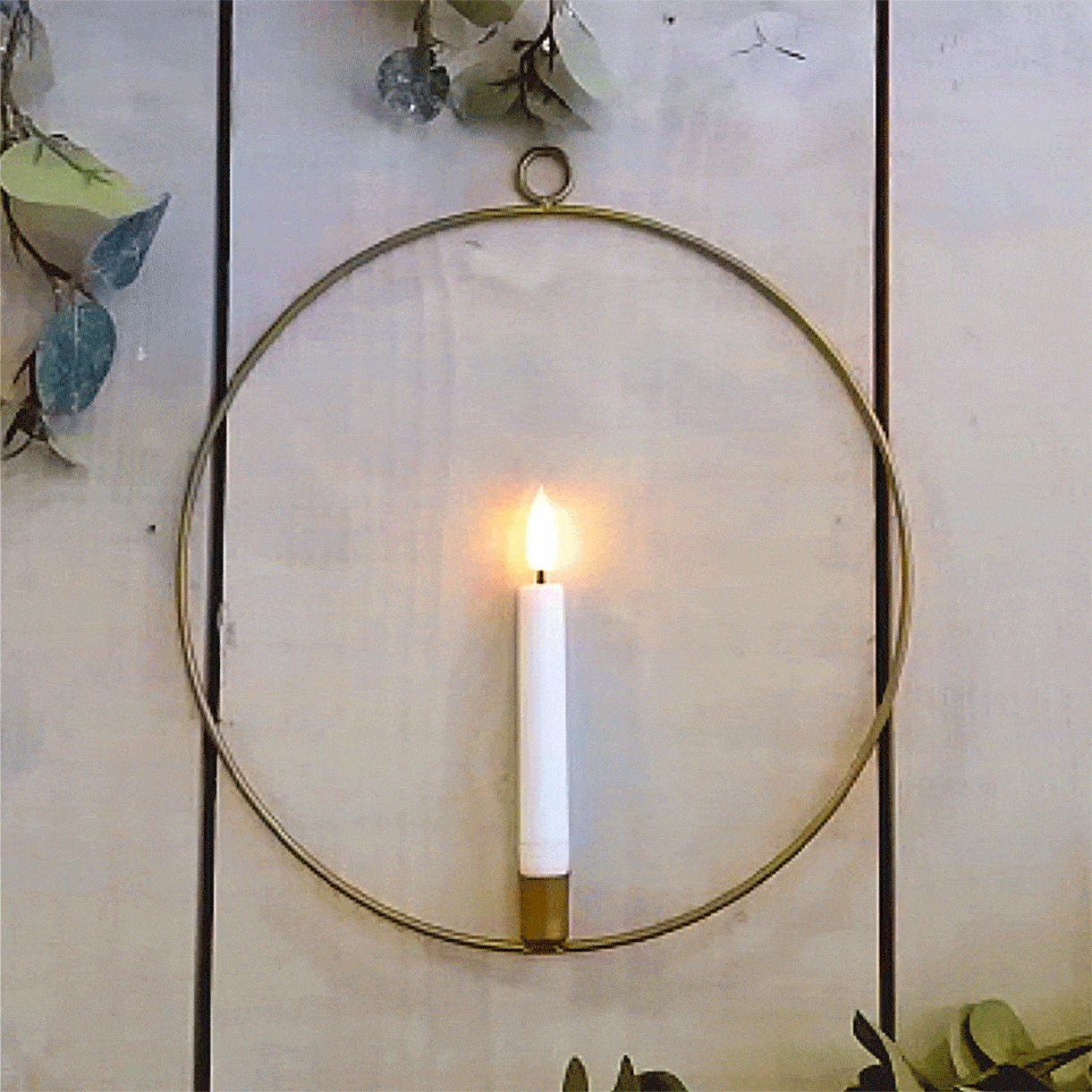 This delightful LED flickering hanging gold candle ring is the perfect way to add extra light and sparkle to your home at Christmas.
