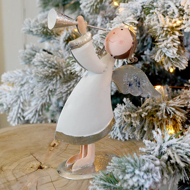 Merry Christmas to one and all she toots... surely playing a very festive tune, this sweet metal angel will look very cute on your mantlepiece or window sill.