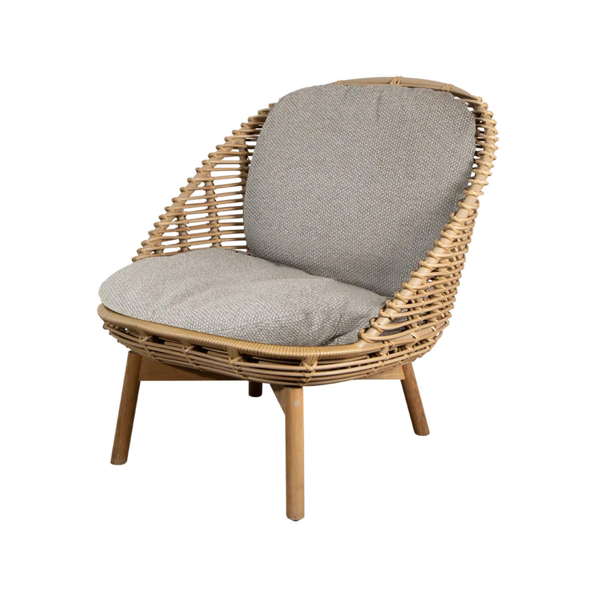 Hive lounge chair has a sturdy teak base, which lends a warm touch to the design, while the laid-back shell is woven in Cane-line Weave® in an open wicker pattern.
