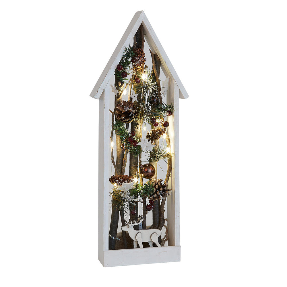 Free standing wooden box Nordic foliage scene, which comes to life when lit with the soft LED lights.