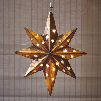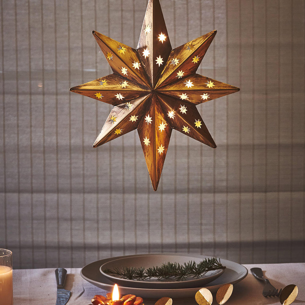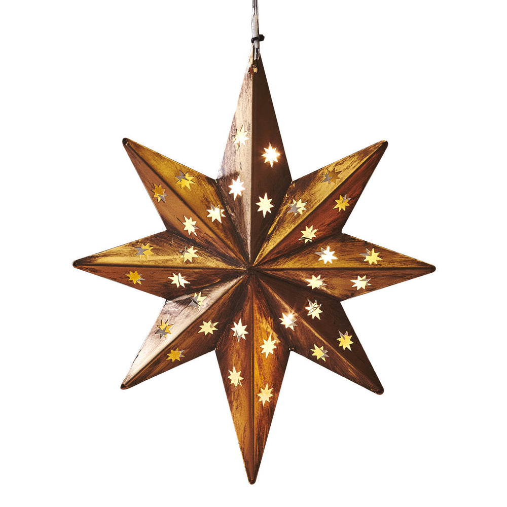 Made in a metal with a vintage rustic finish, the star contains 10 warm white LED lights.