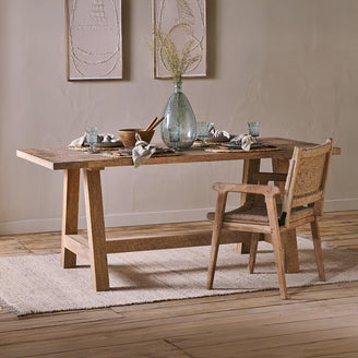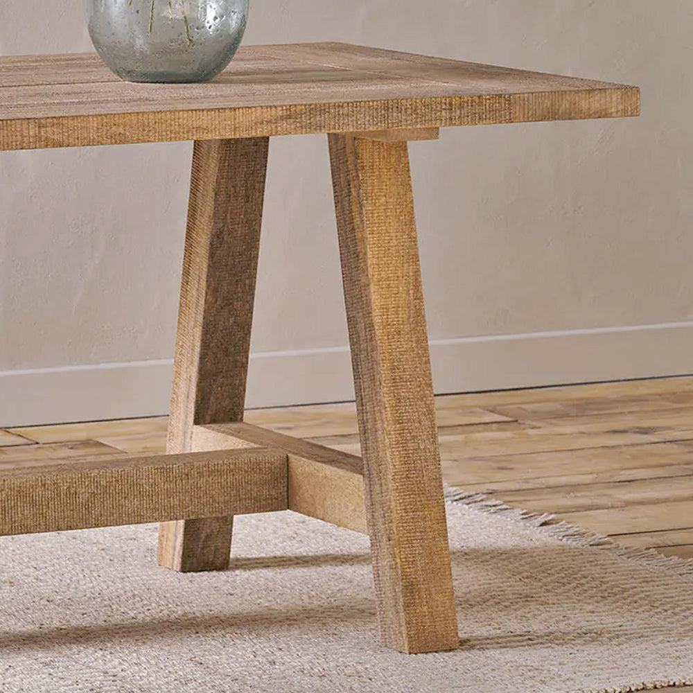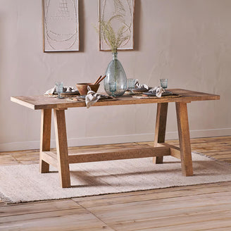 Made in mango wood the table has a comfortable warmth and depth, enhanced by the relaxed A frame style.