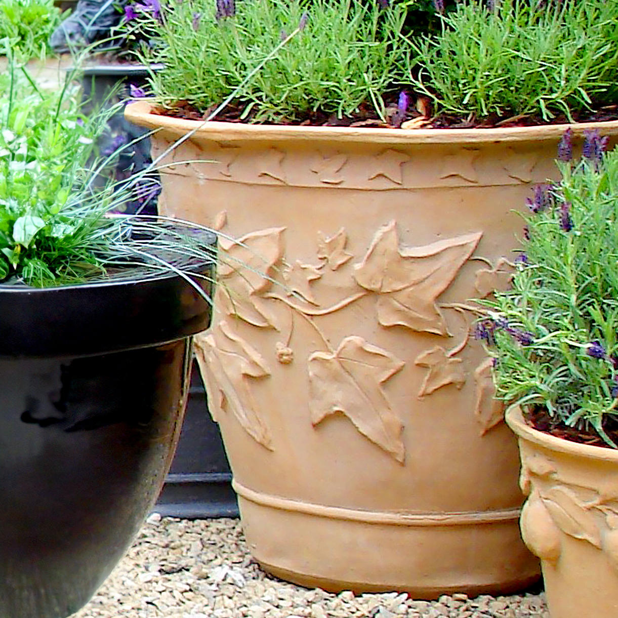 A gorgeous ivy detailing runs round the planter, which would be perfect planted up with lavender or citrus trees.