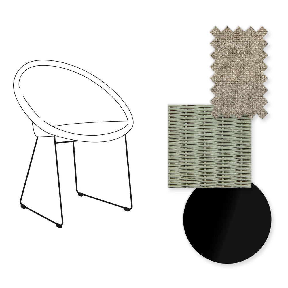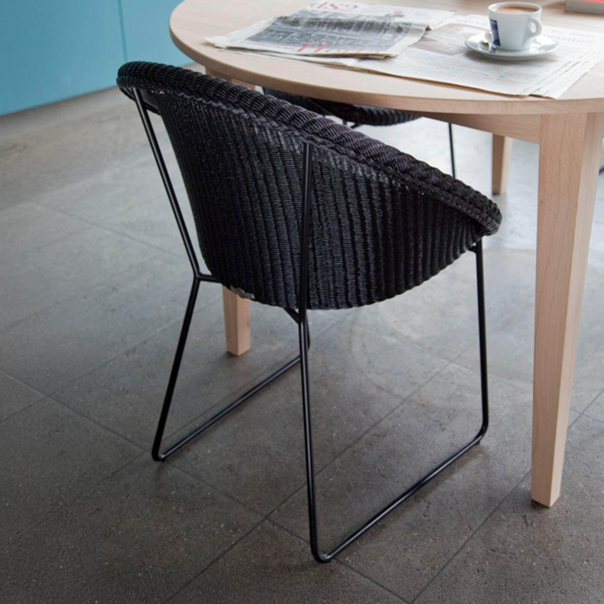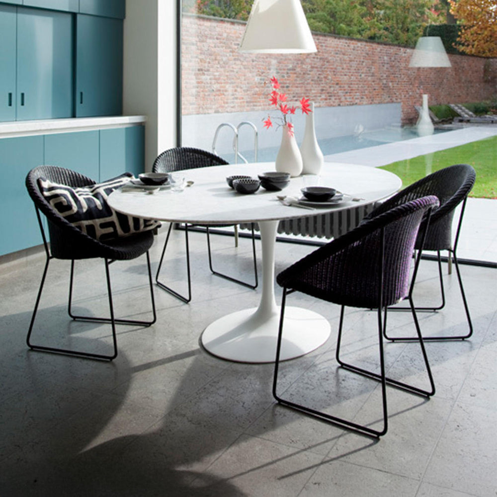 The Joe Indoor dining chair has an elegant shape which fits in any interior. The sleek metal sled base adds a contemporary touch whilst blending harmoniously with the warmness of the Lloyd Loom weave.