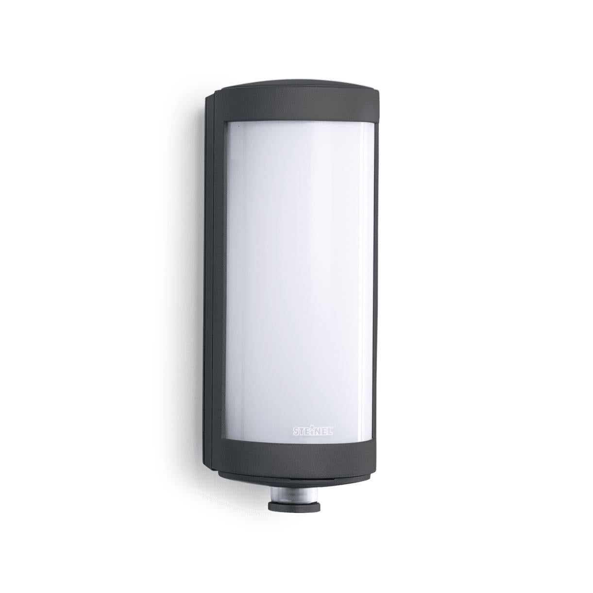 The matching addition to outdoor SensorLight L 625 LED with illuminated house number. Designer sensor-switched outdoor light L 626 LED, ideal for building entrances and building fronts, 9 W STEINEL LED light system, 360° angle of coverage, reach up to 7 m all round, aluminium trim panel, removable mini-sensor with 4 programmes geared to practical needs, including soft light start.