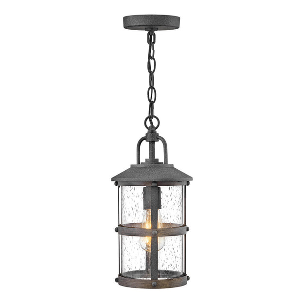 The seeded glass panels with the aged zinc finish and driftwood grey finish to the outer rings gives the lantern a hint of coastal styling.