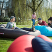 No pumps are required to inflate the Lamzac XXXL, simply open the top of the bag and swing the lightweight bag from side to side to fill it with air. Then fold the top of the Lamzac together and create a life size lounge seat.
