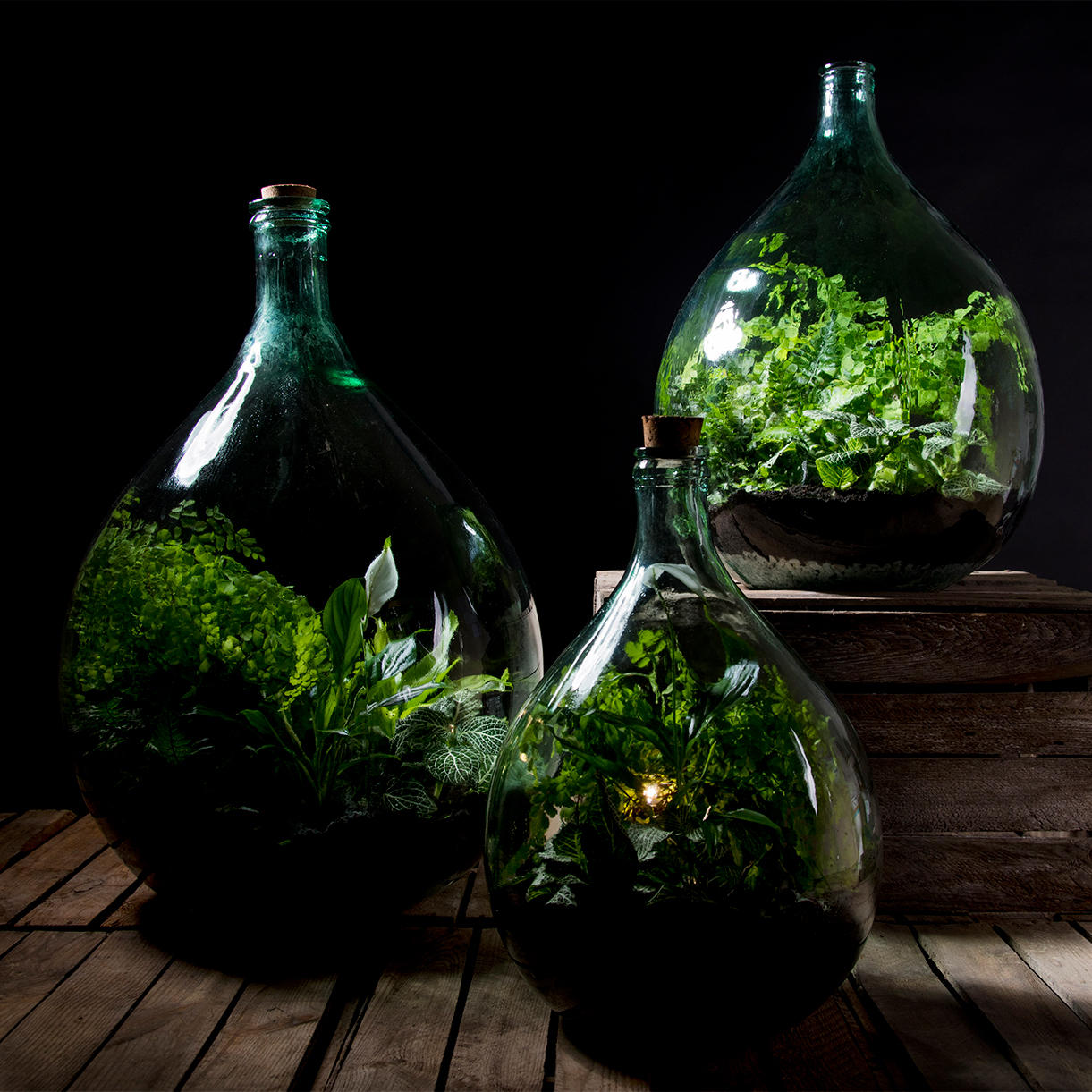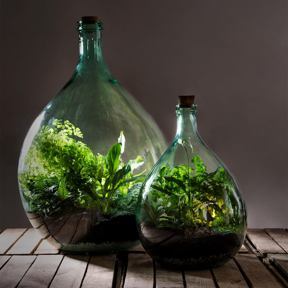 A beautiful way to create your own living garden in a bottle. Plants in bottles are not a new idea, the idea originates from the 18th century, when glass bottles were used to bring over plants and seeds from the other side of the world.