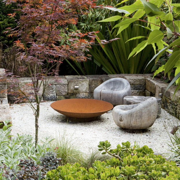 This garden fire pit has a sleek and timeless design, the simple round shape lets you to enjoy the warmth and atmosphere from all sides.