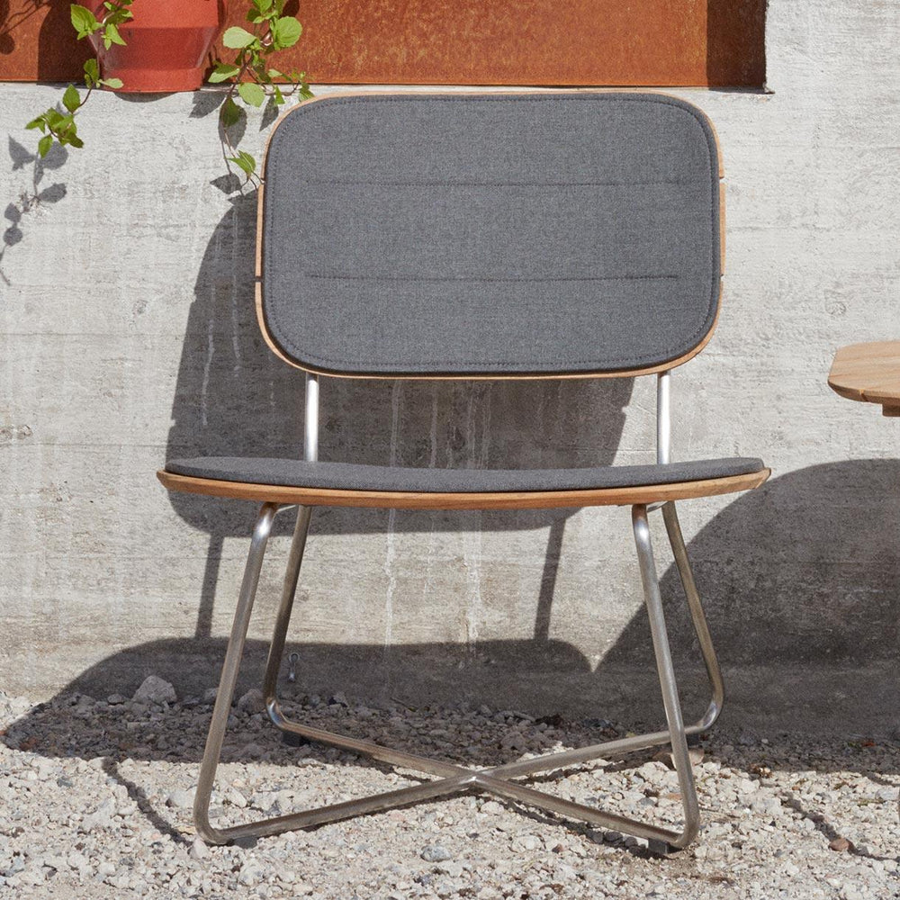 The Lilium lounge chair by Skagerak is a modern and informal piece of furniture, the cushion in outdoor fabric is an ideal accessory which gives additional comfort.
