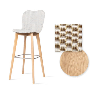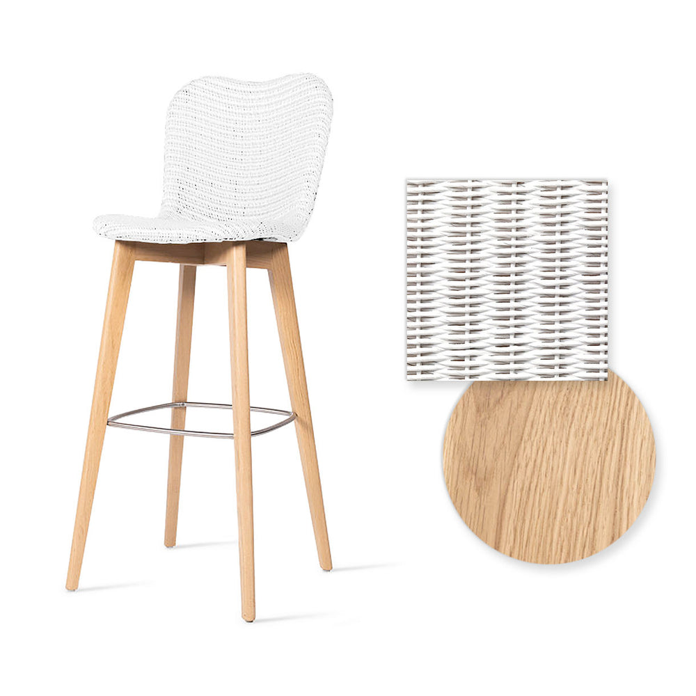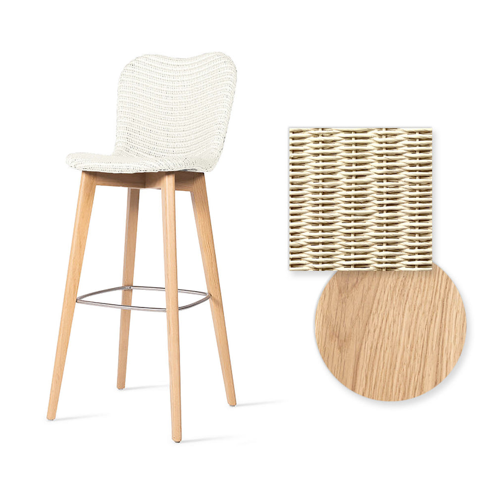 The Lily collection forms part of the Indoor Vincent Sheppard range of furniture. The seats of the stools are made using Lloyd Loom weave which is made from twisted Kraft paper spun around a steel wire. Highly skilled craftsmen shape the loom to the natural oak frames by hand, thus producing a smooth and attractive finish that will, unlike normal wicker, not snag clothing or skin.